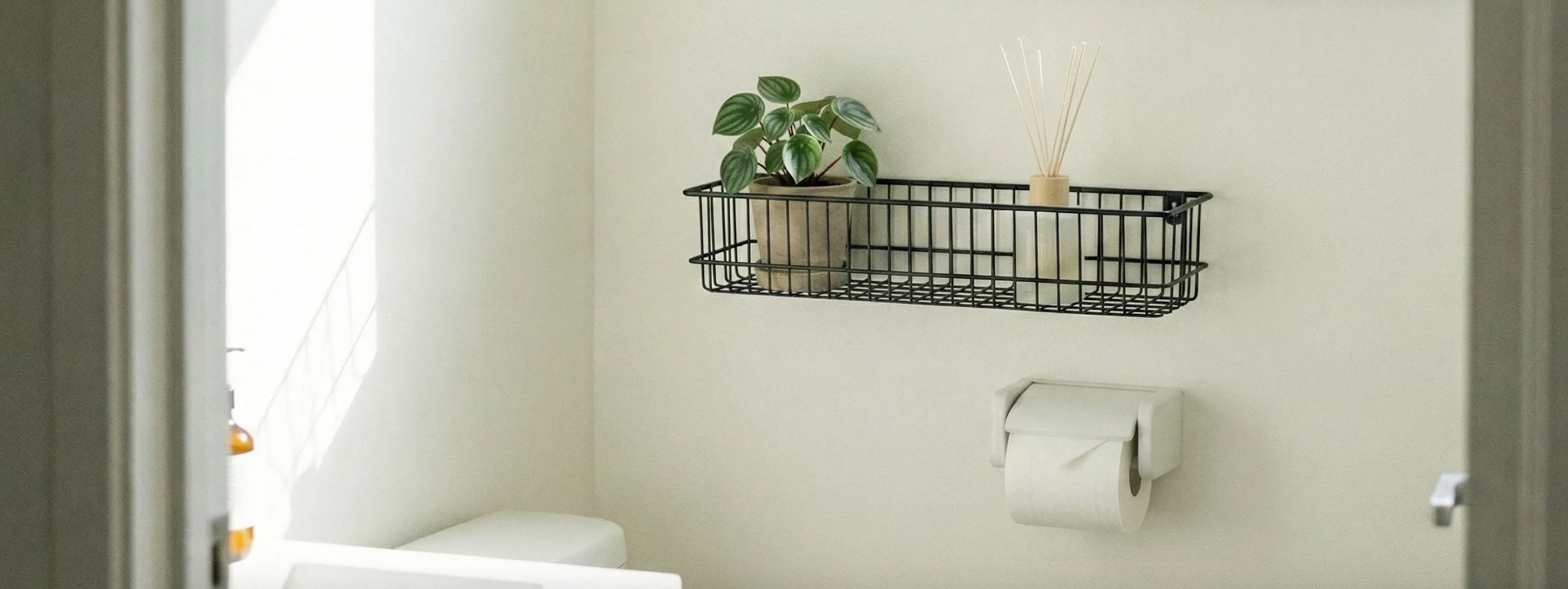 トイレに棚がないお悩みを解決!トイレットペーパーホルダーに差し込むだけで、スマホや芳香剤、予備ペーパーの置き場所が生まれるアイデア商品を紹介します。